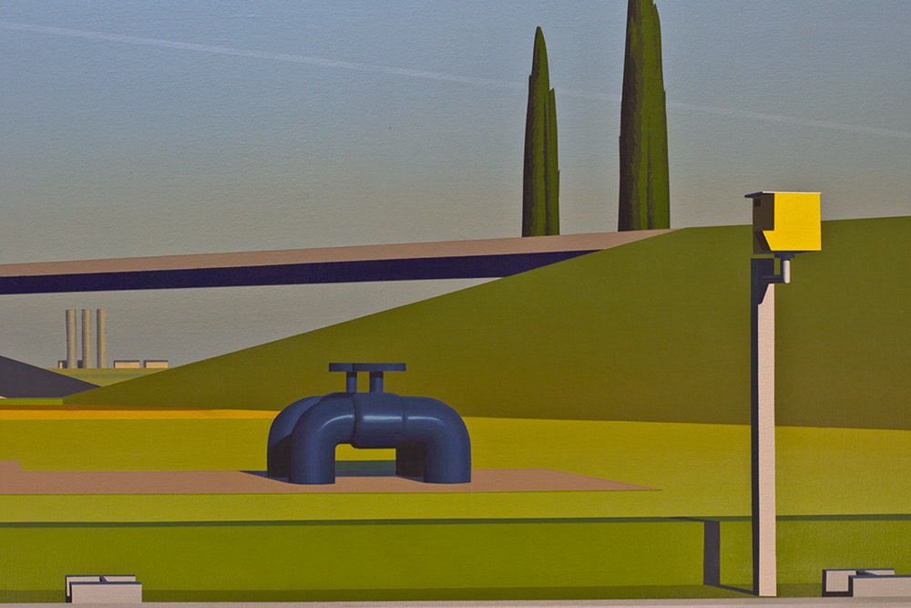 Detail of the speed trap and water works from the painting 'Roadside'.
